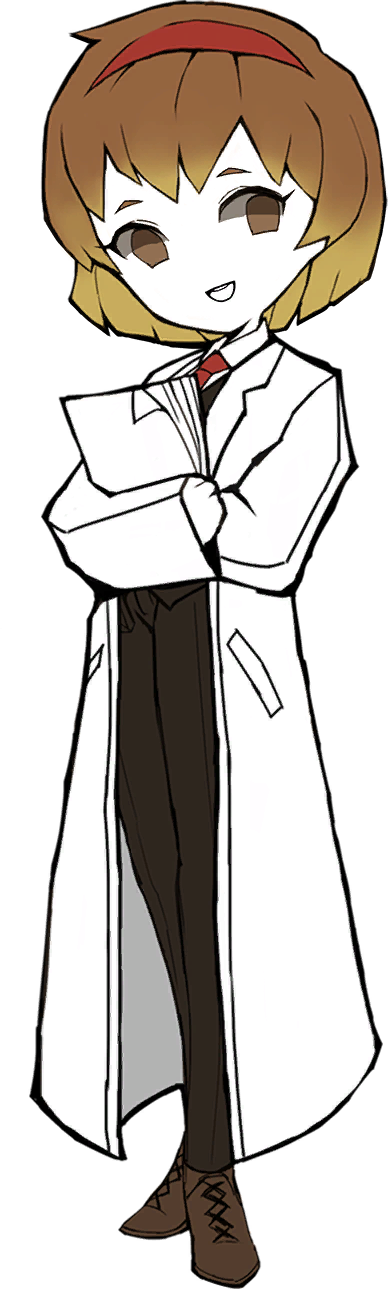 ストーリー内で描かれる彼女は白衣を着用しています。